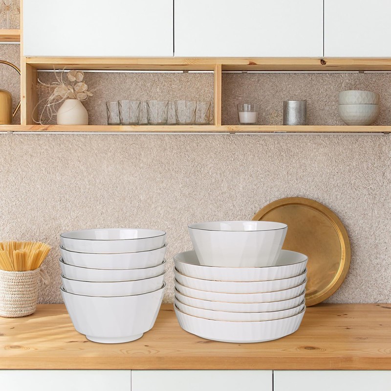 - 30 oz Cereal Bowls Set of 6 & 23oz Salad Plates Set of 6 ,White Ceramic Dinnerware Sets for Salads, Pasta,Fruit, Versatile Serving Bowl for Healthy Eating, Meal Prep, Family Dinners, Dishwasher Safe