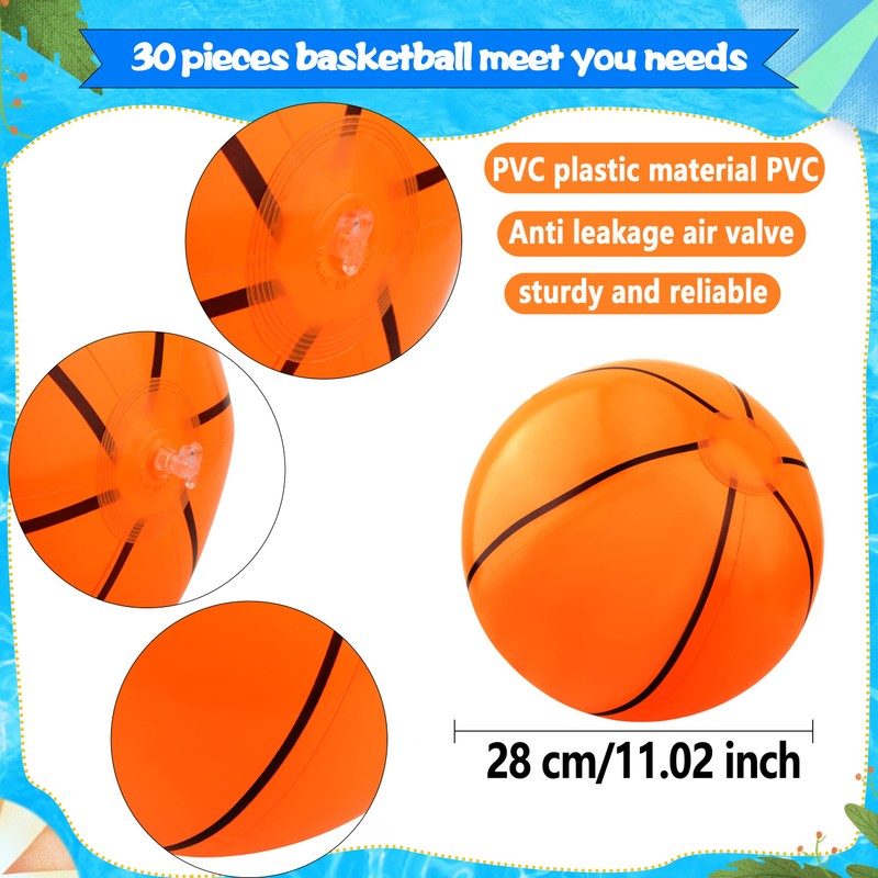 - Package includes: Inflatable sports beach ball contains 30 balls, with two options, basketball and football. The quantity is enough to meet your various needs and enjoy the fun of sports