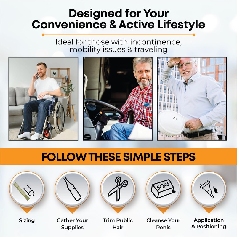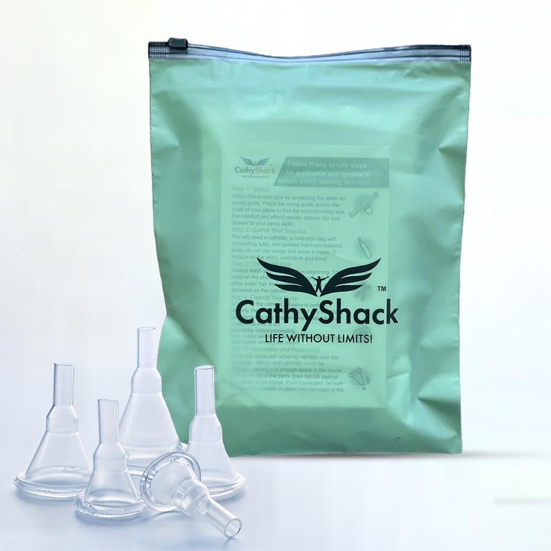 30 Pack 29mm External Condom Catheters for Men Day or Night-Breathable 100%Silicone, Latex Free, Transparent, Moisture Wicking Self Sealing Adhesive, with CathyShack Travel/Storage Bag & Instructions