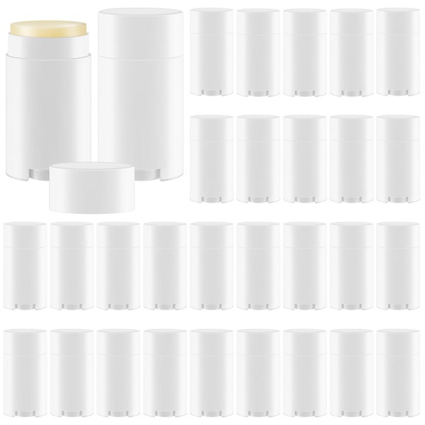 30 Pack 75ml/2.5oz Empty Deodorant Containers, Bottom Filling, White Plastic Oval Refillable Deodorant Containers Twist up Oval Lip Balm Tubes for DIY Deodorants Lipstick Crayon Chapstick Lotion
