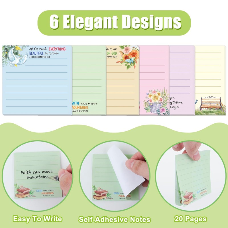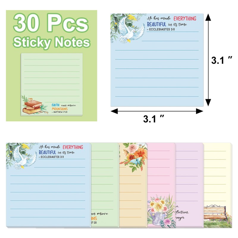 - 🎁 WHAT YOU WILL GET. 30 pack Christian bible sticky notes, 6 unique designs, 20 sheets per pad. Sufficient quantity can meet your various uses and replacements.