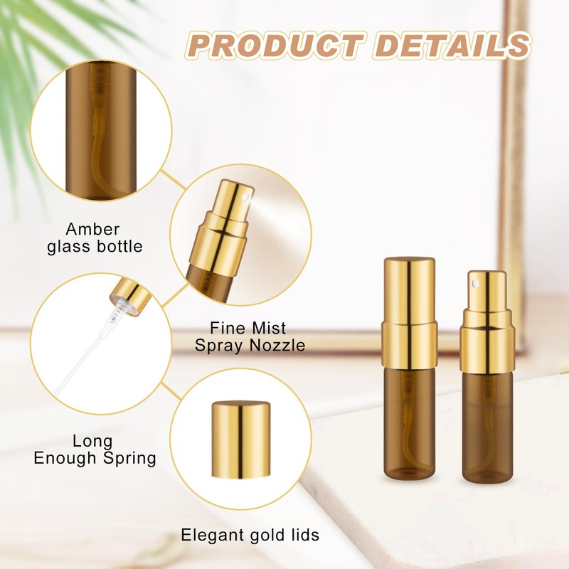 30 Pack Empty Mini Glass Spray Bottle Refillable Fine Mist Perfume Atomizer Portable Travel Sample Spray Bottles Containers For Perfume Essential Oils Cosmetics Liquid (amber bottle, 3ml)