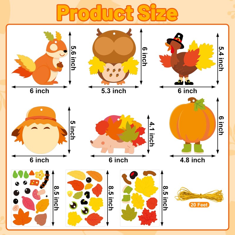 - PACKAGE INCLUDES. 30 sets fall autumn art crafts, comes with 220 fall decorative stickers in 15 sheets, 1 reference, 6m gold strings for easy hanging and decoration.