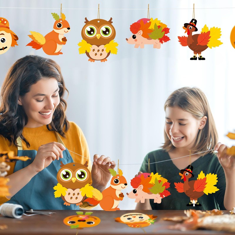 - FUN DECORATIONS. Feature fall theme design, includes owl, turkey, squirrel, scarecrow, pumpkin and hedgehog elements. Use these fall crafts to decorate your Thanksgiving party, classroom or house, will create a Fall atmosphere and joy.