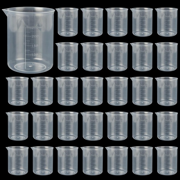 30 Pack Plastic Beakers 300 ml Graduations Plastic Graduated Measuring Cups for Science Lab Equipment, Home Experiment, School Teaching Supplies, Transparent