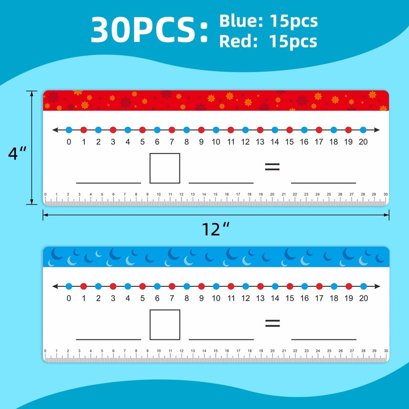 - DOUBLE SIDED DESIGN: Each set includes 30 dry erase boards with 0-20 number lines printed on the front side, which is convenient for kids to learn numbers and perform basic math operations; the back side is a blank whiteboard, suitable for free play creativity and writing
