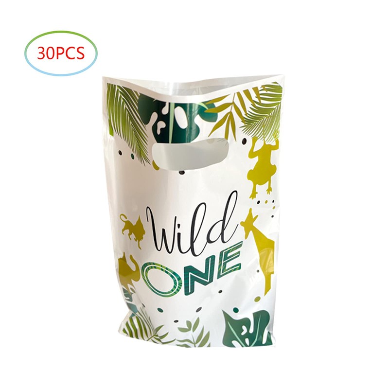 30 Packs Wild One Jungle Safari Party Gift Bags, Favors, Candy Bags, Decorations for Kids Birthday Party Supplies