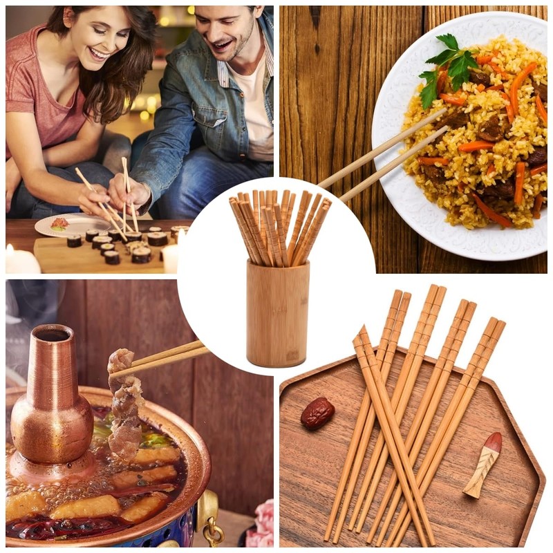 - Non-slip design: Our Reusable Bamboo Chopsticks is using ergonomic design to make these 24cm natural wood chopsticks easier for adults and children to catch, non-slip, suitable for new users when eating sushi, noodles, rice, barbecue, etc.