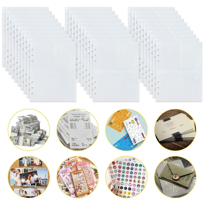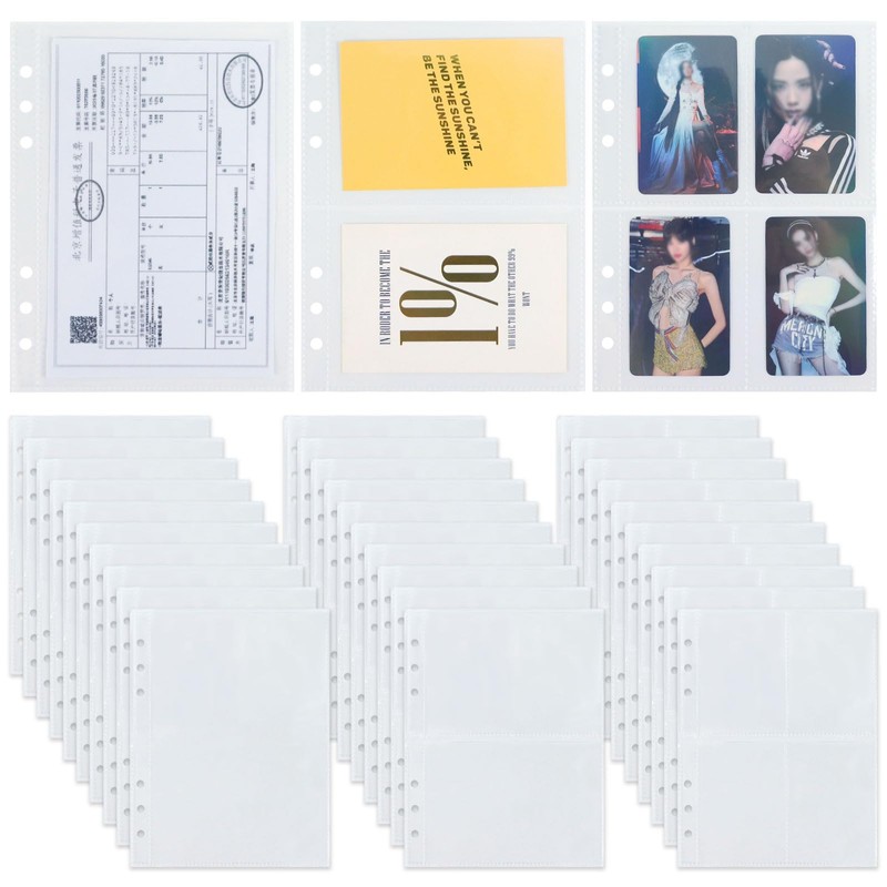 30 Pcs A5 Binder Pockets, 3 Size Double-Sided Binder Card Sleeves Pouch Photo Album Page for 6 Ring Insert Sleeves Refill Sheet