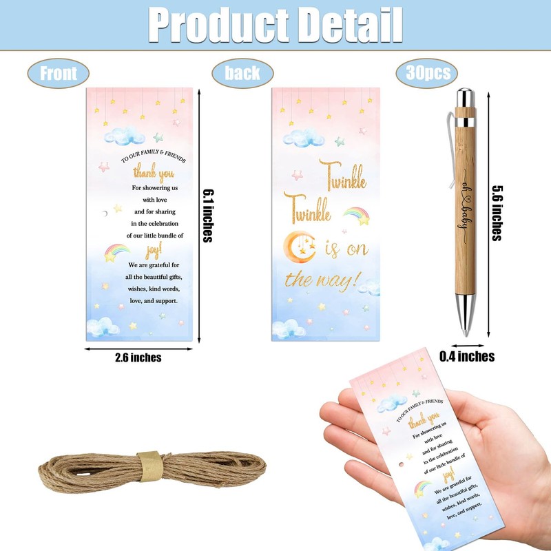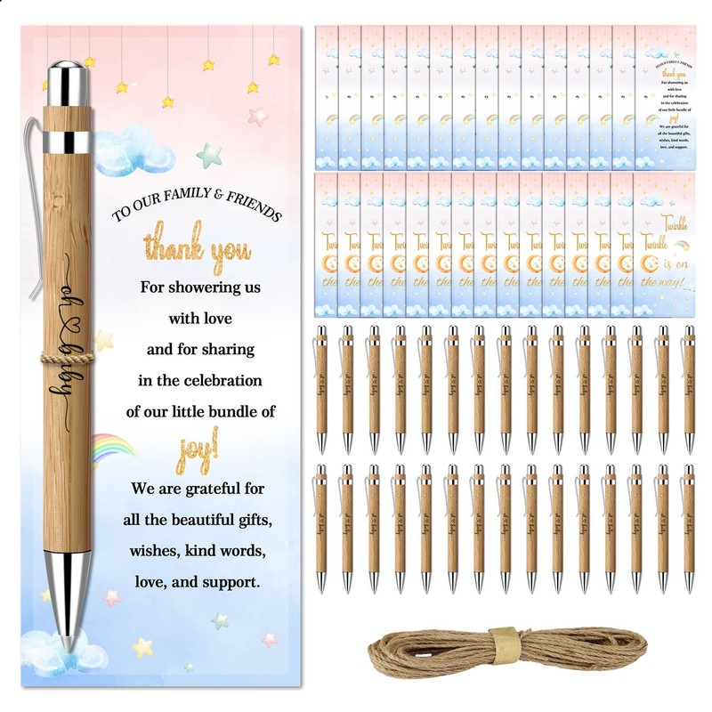30 Pcs Baby Shower Gifts for Guests, Thank You Gift Sets, Included Bamboo Pens Greeting Cards, Gender Reveal Souvenirs Prizes, Twinkle Twinkle Little Star Baby Shower Decorations