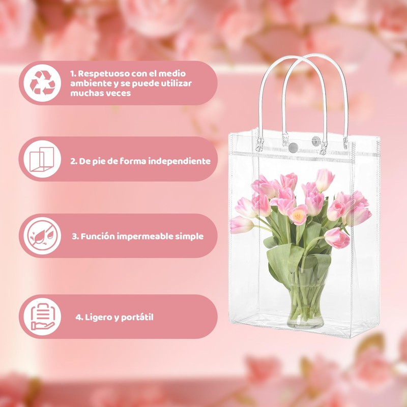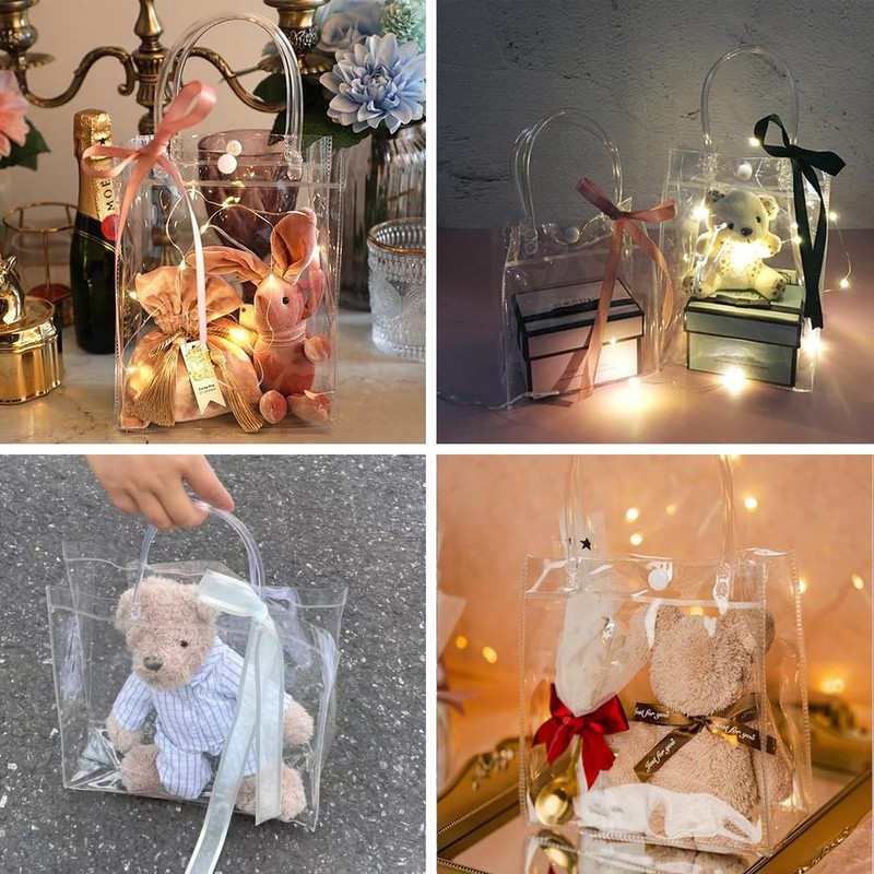 - Hecha de PVC y reutilizable: esta bolsa de regalo transparente no solo es hermosa, sino también confiable y reutilizable. Esta bolsa de regalo está hecha de material de PVC de alta calidad, que es seguro, confiable, impermeable, liviano y puede usarse durante mucho tiempo.