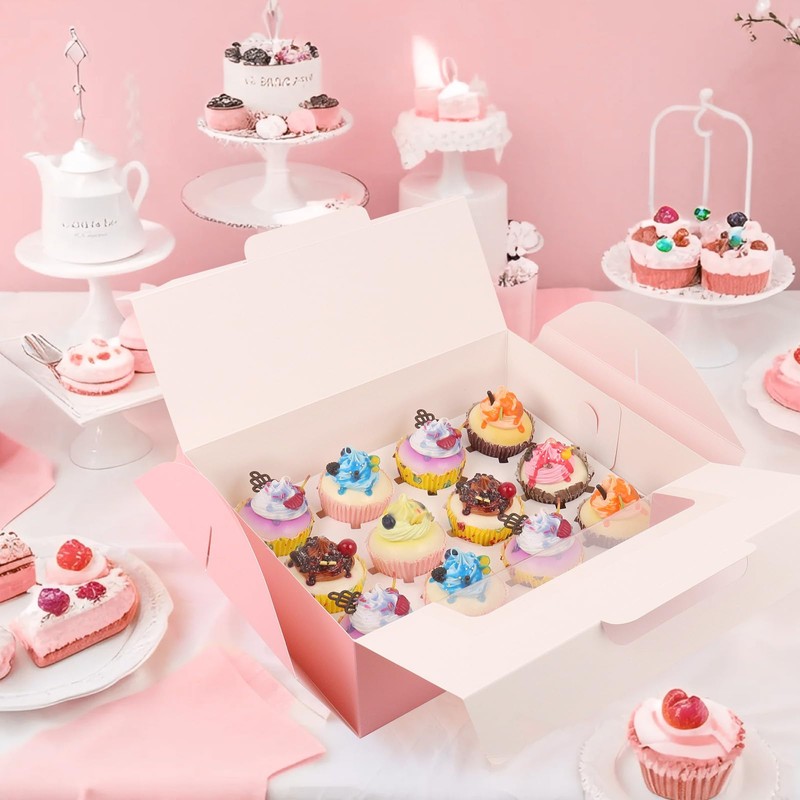 - 【Lovely Pink Cupcake Boxes】This gentle pink shade brings charm to any occasion. These decorative cupcake boxes are more than packaging—they’re part of the celebration and perfect as paper muffin boxes or cupcake to go boxes