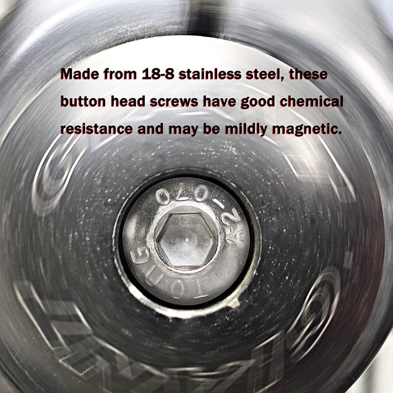- The Button Head Socket Screws are 100% Stainless Steel 18-8 (304) which offers a high level of chemical and corrosion resistance. The corrosion proof steel, makes them last much longer than screws made of common materials.