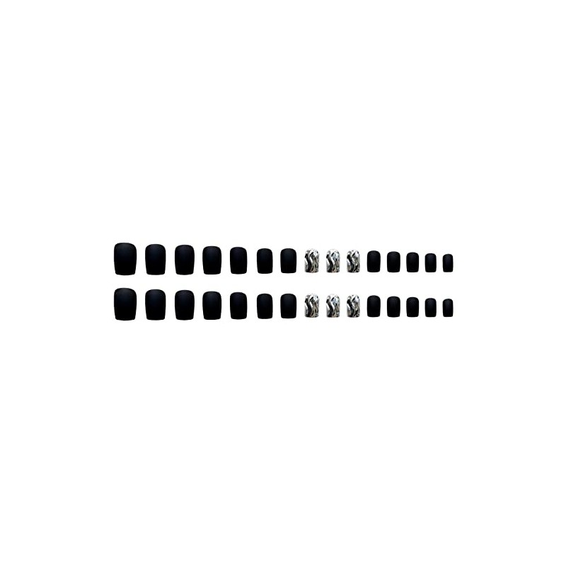 30 Pcs Nail Setting, Water Wave Pattern Nail Tip, Double Sided Tape, Simple, Hardened False Nails, Short (Black Water Wave Pattern)