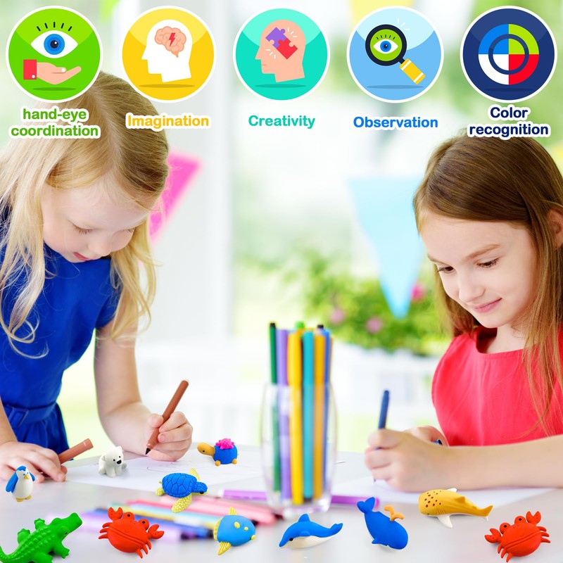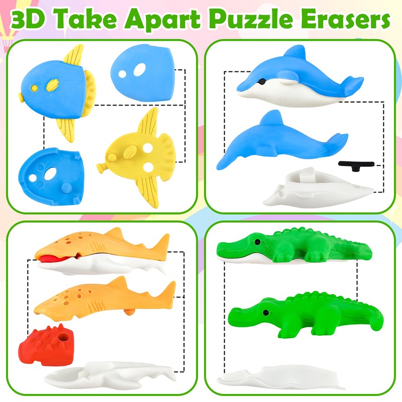 • Surprise Gift for Kids: These take apart erasers are great as easter egg fillers, party favors, motivational treasure for students, desk pets or to give away for little prizes.
