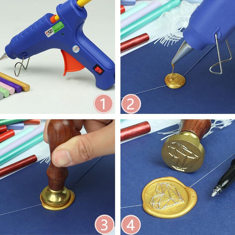 - 【Easy to use】The sealing wax stick can be melted without flame, using low temperature small standard 0.28 inch/7mm glue gun. If you plan to seal dozens of envelopes, this is a more effective method.