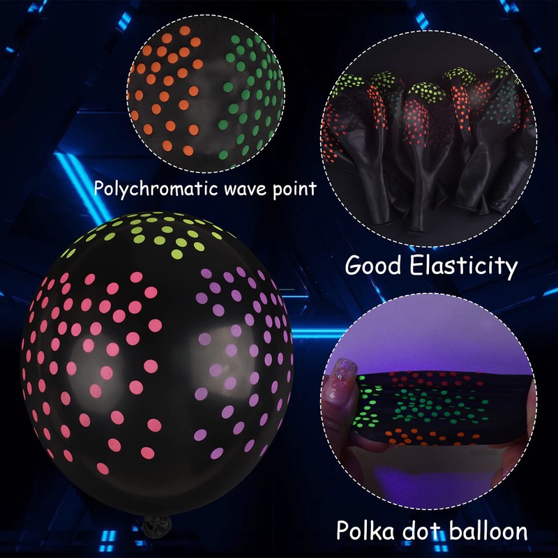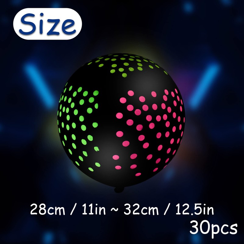 30 Pieces Neon Balloons, Glow in the Dark Light Up Balloons, Dots Balloons Glow Party Polka, Disco Glow Balloons Black Light Latex Balloons, Reactive Fluorescent Balloons Party Decorations