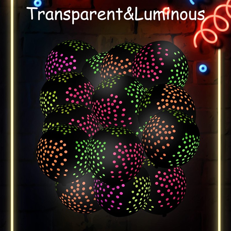30 Pieces Neon Balloons, Glow in the Dark Light Up Balloons, Dots Balloons Gl...