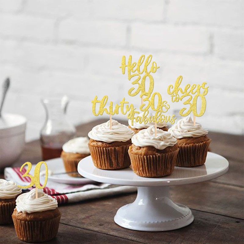 Perfecto para fiestas temáticas de feliz cumpleaños 30, fiesta temática de 30 aniversario, alegría a 30 años, suministros de decoración de cupcakes.