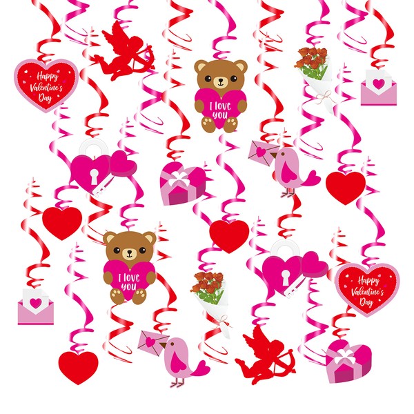 - 🎊100% Plastic Material Ceiling Swirls Garland: Valentine’s Day Theme Hanging Swirls Party Decorations are made of Shinny Plastic,are eco-friendly,not easy to tear, waterproof, and easy to clean.
