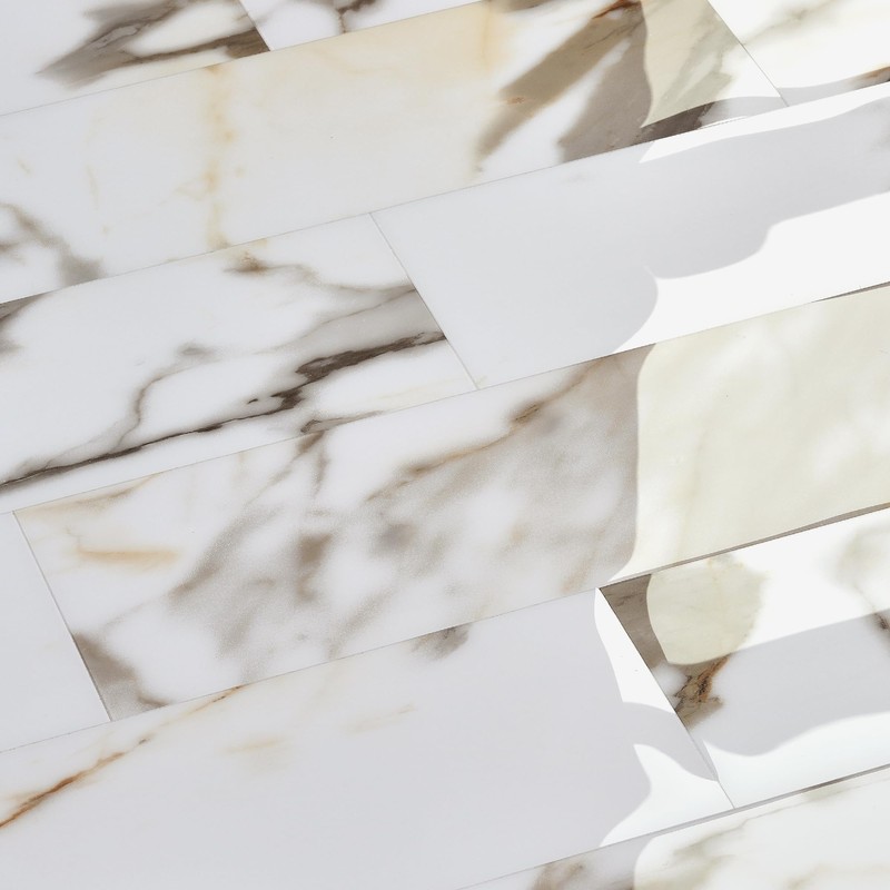 30-Sheet Subway Peel and Stick Backsplash, 12" x 4" Glossy Calacatta Gold Acrylic Self Adhesive Waterproof Wall Stickers, Stick on Tiles for Kitchen Bathroom Shower