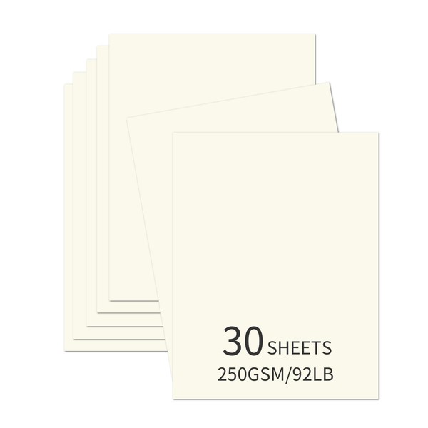 30 Sheets Cream Cardstock 8.5'' x 11'', 250gsm/92lb Heavyweight Cover Cardstock Paper, Thick and Smooth Card Stock Perfect for Invitations, Menus, Crafts, DIY Cards, Arts and Crafts