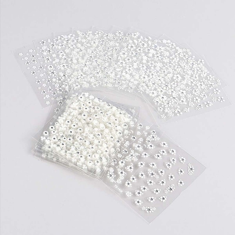 30 Sheets White Flower Nail Sticker,White Floral Nail Decals with Rhinestone,3D Self Adhesive Stickers for Nails Design,Nail Art Supplies & Decorations for Women,DIY Manicure Decor