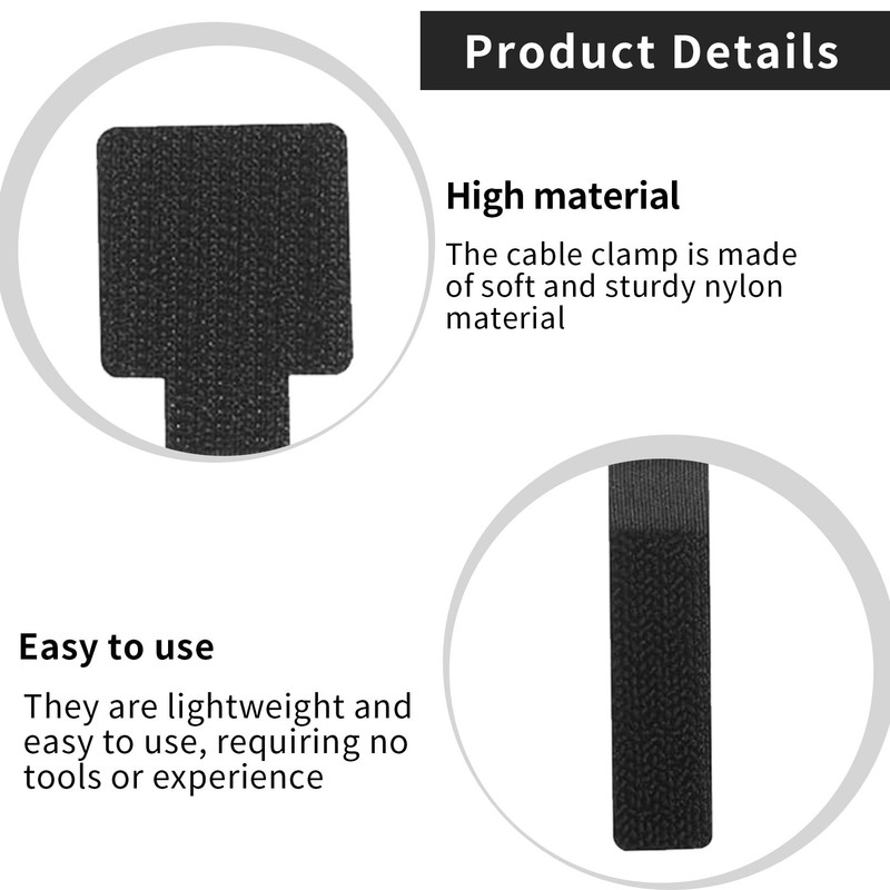 • 📏 3. Produktverarbeitung & Design: Die Clips sind in verschiedenen Größen erhältlich, um dickere und dünnere Kabel sicher zu halten. Die flexible Klettfunktion ermöglicht einfaches Anpassen und Wiederöffnen ohne Beschädigung.