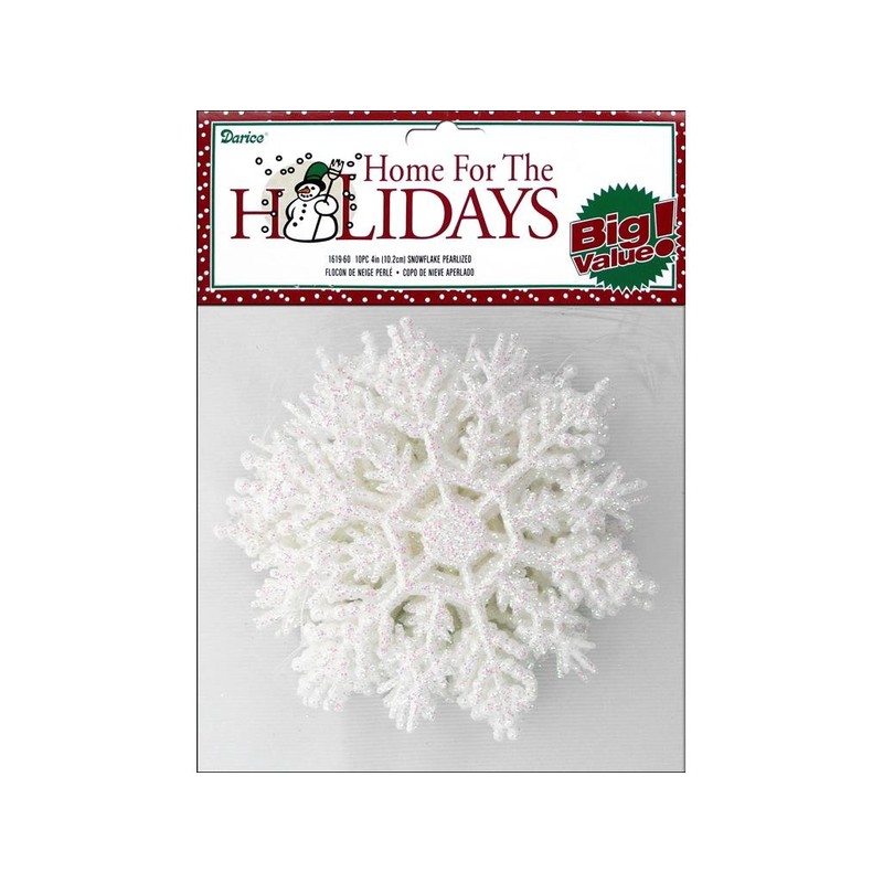 - 30 White Snowflakes with Pearlized Glitter. Each Snowflake Measures 4"!