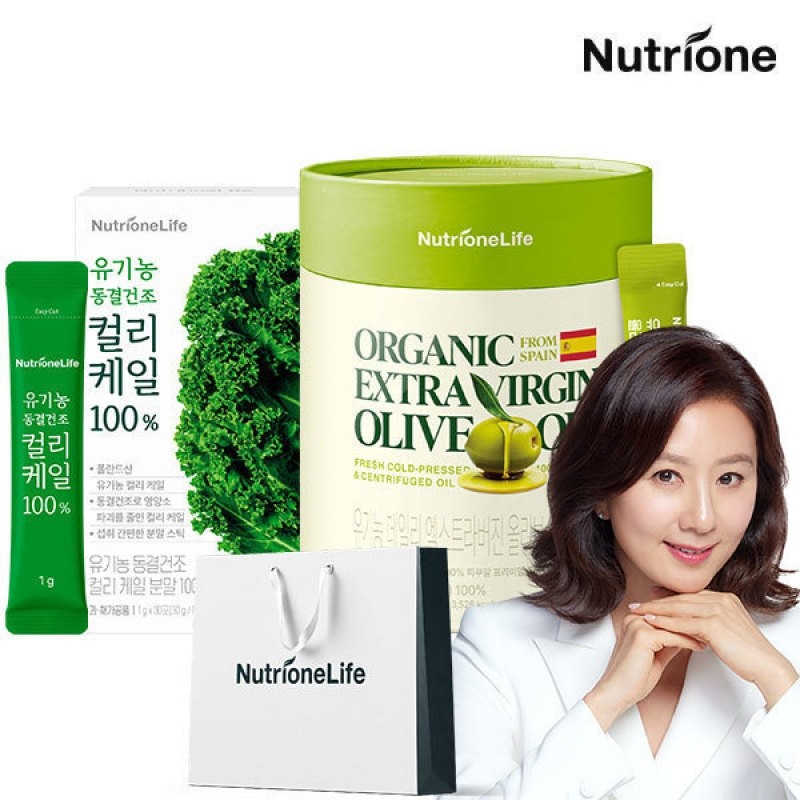 뉴트리원 유기농 동결건조 컬리케일 100% 1박스(30포) + 유기농 엑스트라버진 올리브오일 100% 1박스(50포)">