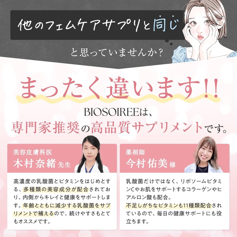 - 【こんなデリケートなお悩みありませんか?】「トイレで下着を下ろすと匂いが気になる」「彼が求めてこなくなった」「年齢とともにデリケートな悩みが増えた」「人前で脱ぐことに抵抗がある」「自身を持てず気分が落ち込む」。そんなあなたにビオソワレがおすすめ、身体の内側から優しくケアし、自身あふれる毎日をサポートするサプリメントです!