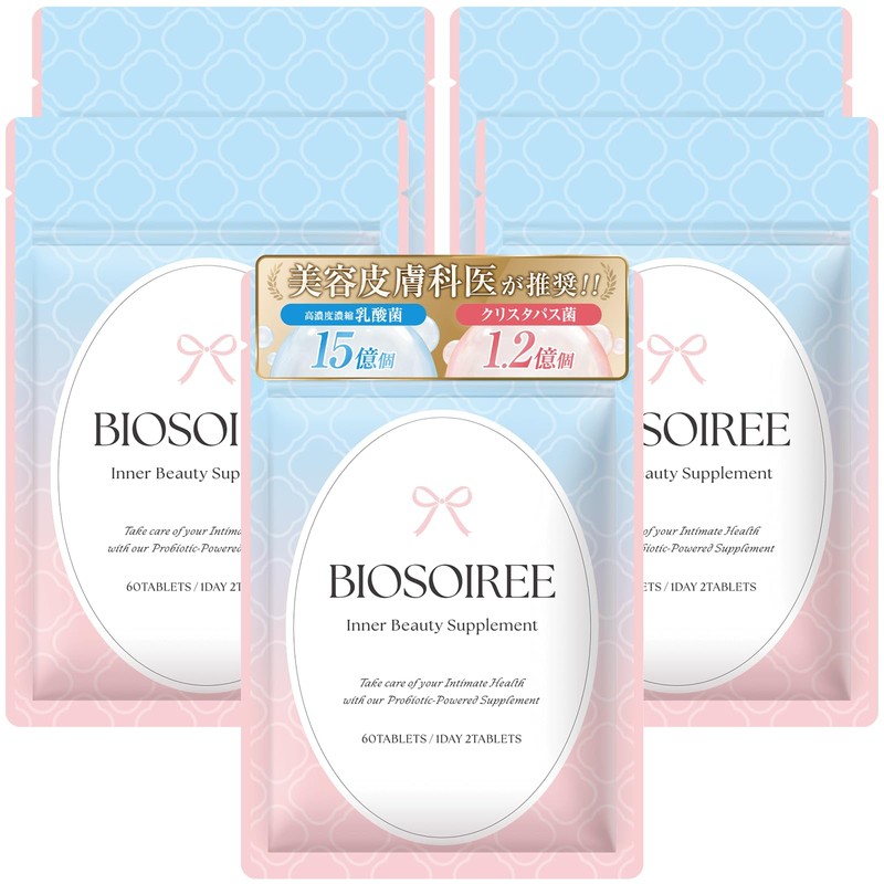 300粒 / 5個セット【美容皮膚科医 推奨】ビオソワレ(BIOSOIREE) デリケートゾーン サプリ 不快感 匂いケア 高濃度濃縮乳酸菌 クリスタパス菌