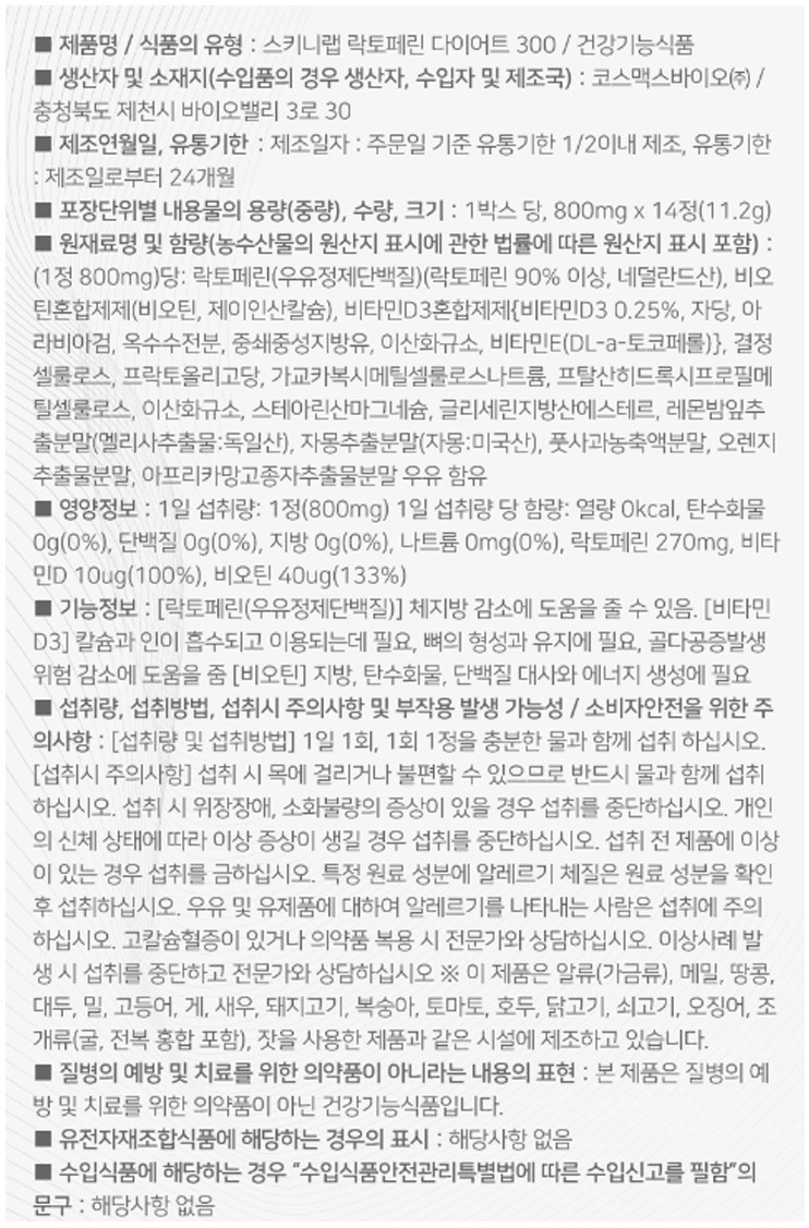 스키니랩 락토페린 다이어트 300 800mg x 14정 3박스몸에 좋은 초유 속 체지방 감소 핵심성분만 쏙쏙체지방 관리부터 기초 영양까지락토페린, 비오틴, 비타민D하루 1정으로 건강하게 체지방을 관리하자!