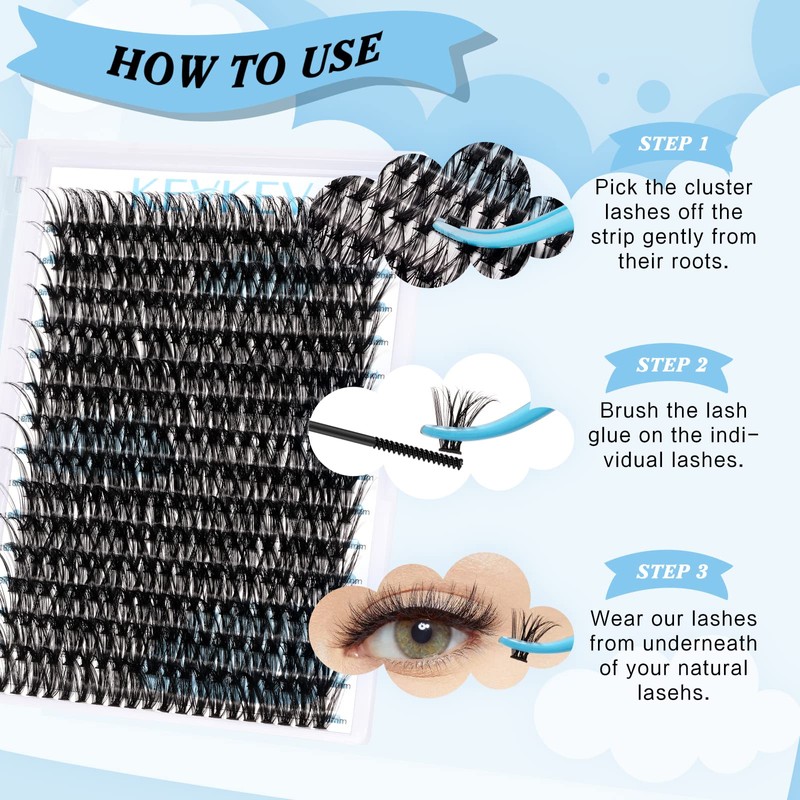 - Convenient and reusable: You can DIY lash clusters by yourself at home. It's easy to apply. KEV individual lashes no glue residue,no burden, and can be easily removed. And every cluster can be reused many times with proper care.
