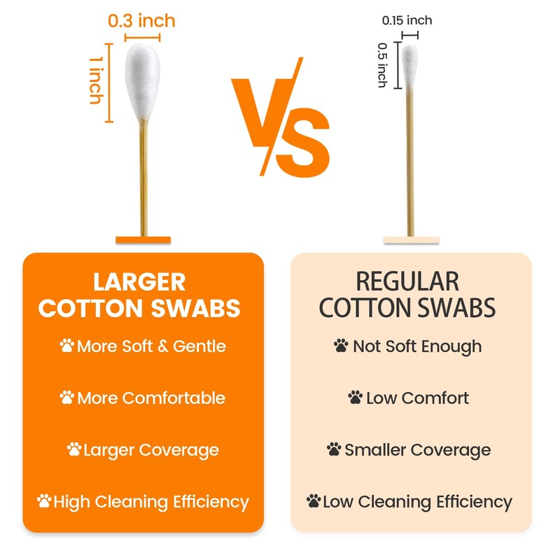 - [ Soft & Absorbent ]: Our dog cotton swabs are wrapped with thick natural cotton, will not hurt the skin. The soft and gentle design ensures a safe and comfortable experience for our dogs. Thick cotton swabs with 100% cotton provides efficient absorbency and is easy to hold cleaner, helping to clean dirt and wax from our dog's ears effectively