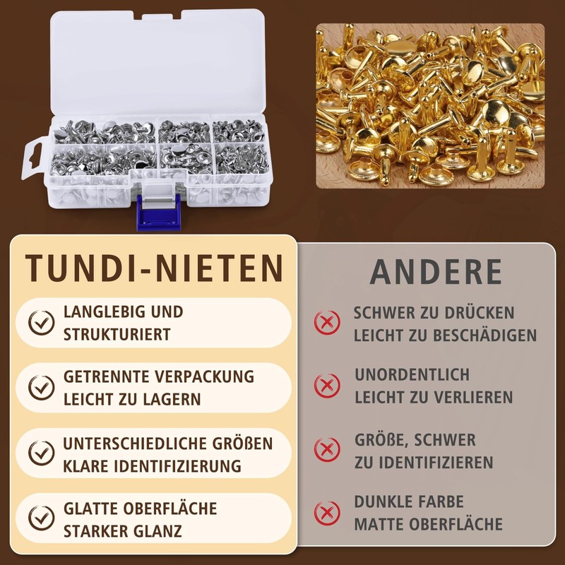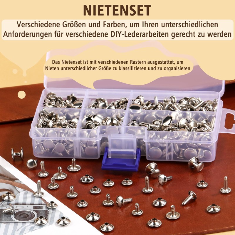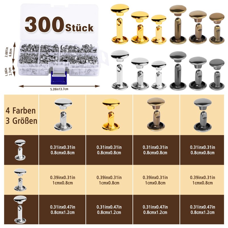 - Rivets for leather craft: the easusy leather rivets set includes 300 sets of double cap rivets in 3 different sizes, which can meet your different needs in daily life