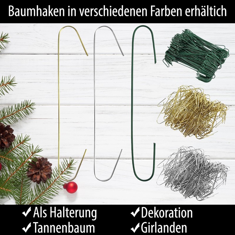Get 300 versatile Christmas tree bauble hangers in great colours - silver, gold and green. These hangers (150 large, 150 small) are flexible and easy to position. With these high-quality hangers, designing your Christmas tree will be a breeze.