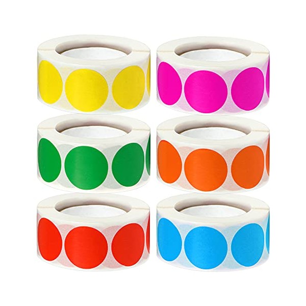 3000 Pcs 1" Round Color Coding Circle Dot Labels on 6 Rolls, 500 Count Each, Includes Bright Yellow Green Red Pink Orange Blue