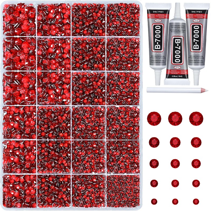 - Complete bedazzled set:Includes 30,000+ dark red premium 3mm resin rhinestones in 24 grids. Comes with a precision pickup pen, easy-grip tweezers, and 3 tubes of professional B7000 adhesive—everything needed for dazzling creations