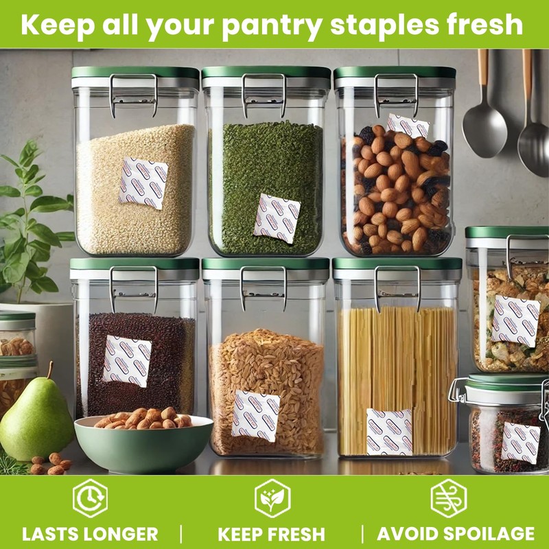 - Extended Shelf Life for Your Pantry Staples: Protect food from spoilage by removing oxygen with o2 absorbers food grade. Perfect for long term food storage, bulk supplies, and keeping grains, beans, and dehydrated food fresh.