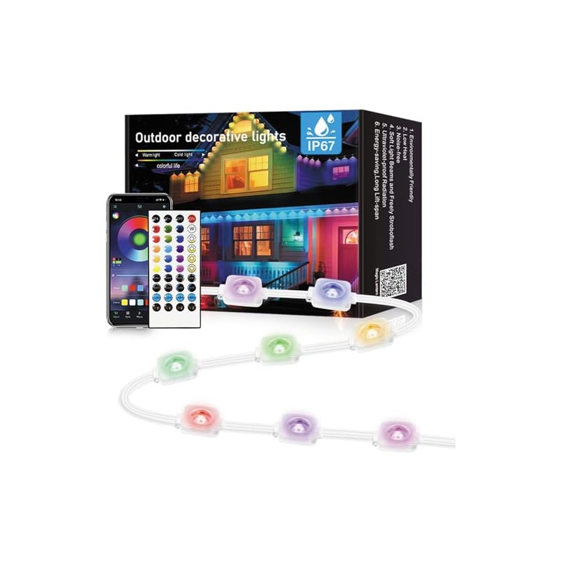 - 【Custom Festive Atmosphere】This outdoor permanent eave light can be customised to your favourite style, and in the corresponding app, you can personalise it with different colours to showcase a unique and charming lighting effect. Meanwhile, these permanent outdoor eaves lights are IP73 waterproof, ideal for parties, festivals, Halloween, Christmas, gardens, backyards, weddings and entertainment venues.