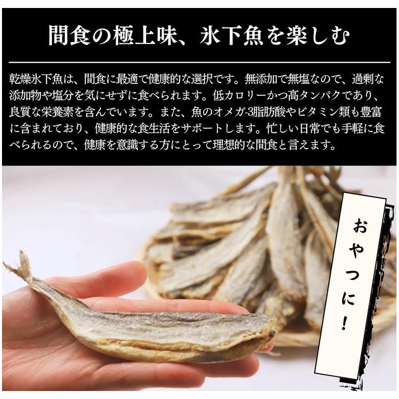- 乾燥氷下魚とお酒は、絶妙な相性を誇ります。魚の旨味が凝縮された乾燥氷下魚は、その豊かな風味が様々なお酒と相性抜群。清酒や日本酒、白ワインから、赤ワインや焼酎まで、幅広い種類のお酒と楽しむことができます。特に、乾燥氷下魚の繊細な味わいは、お酒の余韻と相まって、食事の楽しみを格別なものにします。一口食べ、一口飲む、その繰り返しで、贅沢なひとときを楽しんでください。
