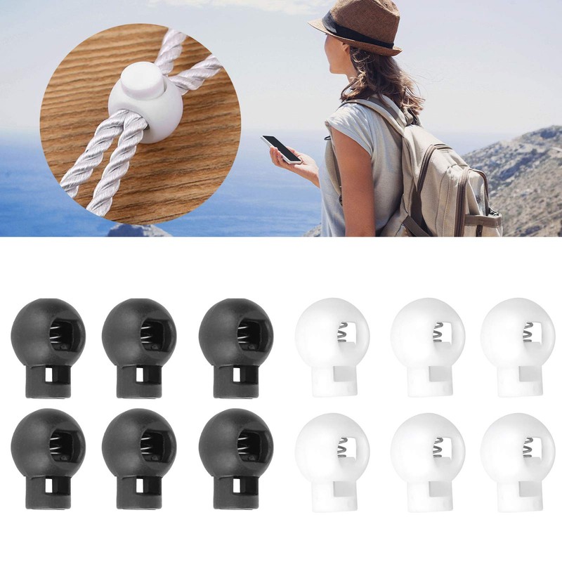 300pcs Cord Locks, Ball Shape Single Hole Plastic Spring Clip for Drawstrings Lace Lock Cord Toggle Paracord Stop Spring Loaded Toggle(Black)