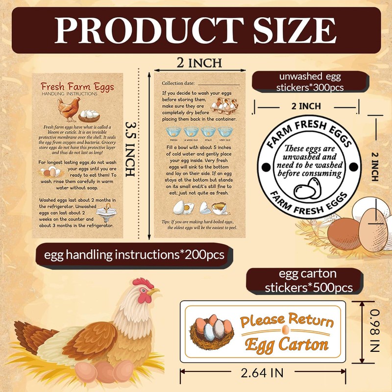 300Pcs Farm Fresh Egg Carton Egg Unwashed Stickers,200 Pcs Double Sided Egg Handling Instruction Cards,500 Pcs Please Return Egg Carton Labels Stickers Roll,Fresh Farm Egg Packaging Set for Business