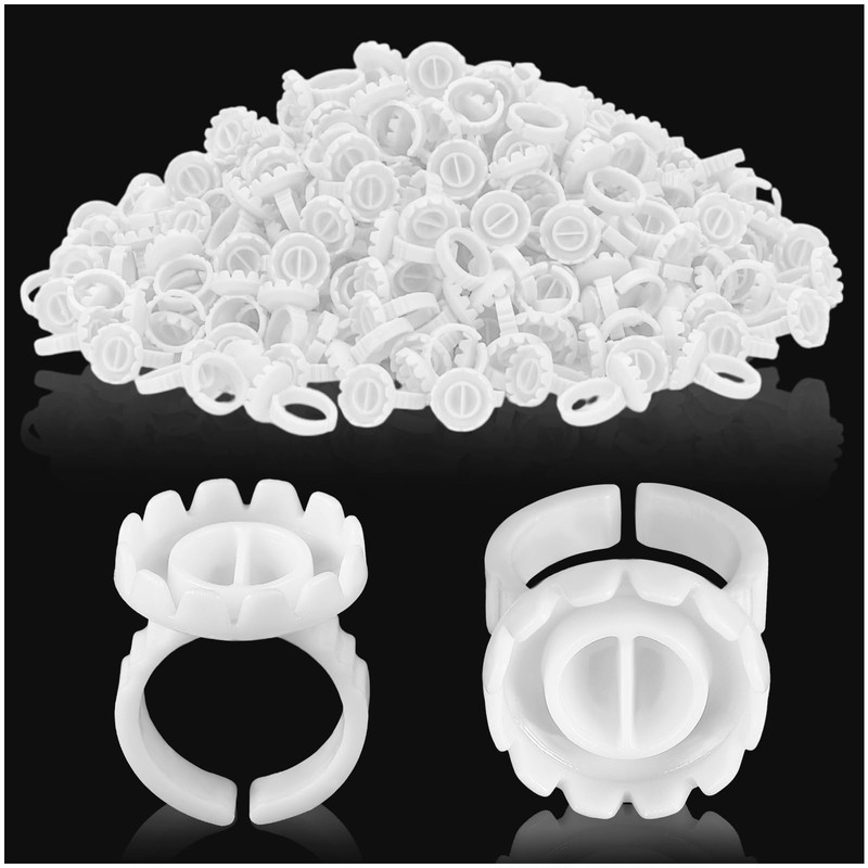 300PCS Glue Rings for Eyelash Extension,Lovely Heart Shape Rings for Lashes,Disposable Lash Glue Holder for Lash Extension Makeup Plastic Nail Supplies (White-r, Round - shaped)