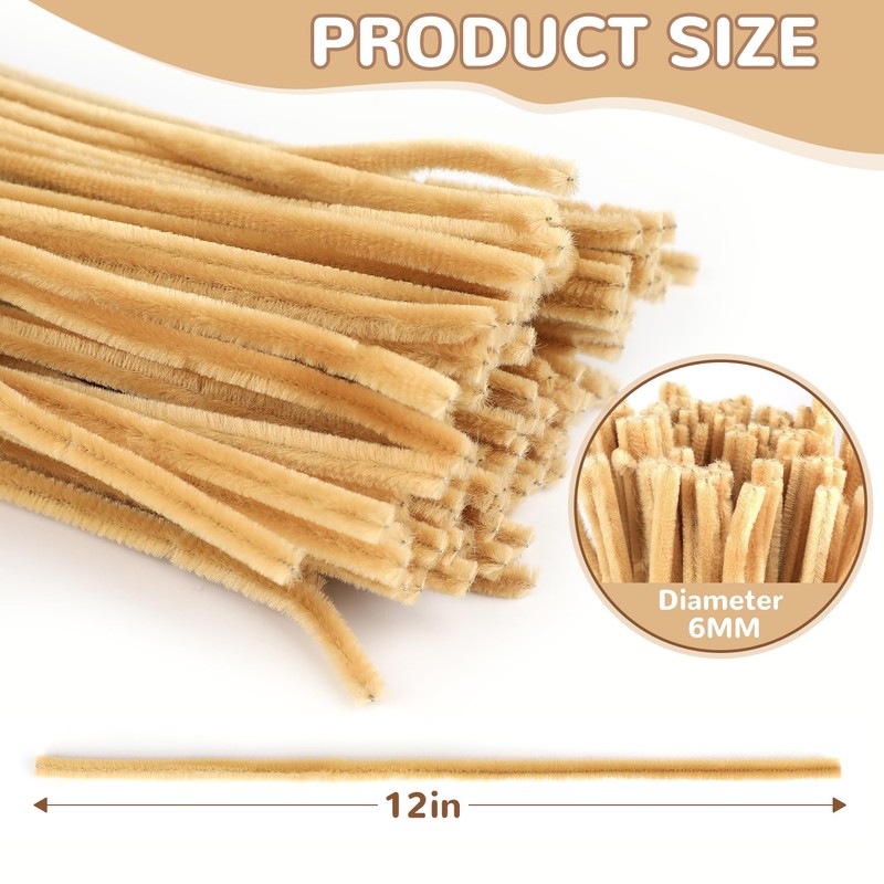 - Package includes:300 light brown pipe cleaners with a diameter of approximately 6mm and a length of 12 inches.
