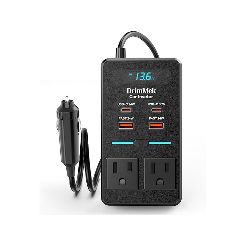 300W Car Power Inverter - Dual DC to AC Plug Adapter Outlets, 65W USB-C Fast Charging, 24W USB-C & 3.0 USB-A Ports, Portable Car Charger with Switch Control Converter for Laptops, Phones