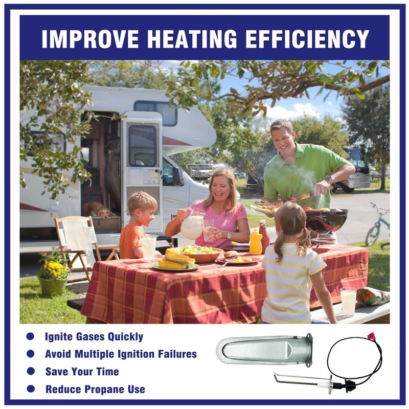 - IMPROVE EFFICIENCY - Our 35100 RV furnaces Ignitor electrode can release sparks and ignite gases quickly, avoid multiple ignition failures and save your time, making your journey more enjoyable. Improve heating efficiency and reduce propane use by replacing with the new 30268 burner head