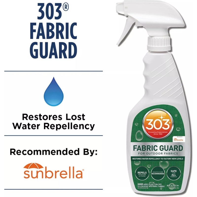 - Stain Resistance – Rejuvenates your fabric's shield against frustrating spots and stains. Simple and easy to use, 303 Fabric Guard helps protect against water-based accidents while drying invisible and keeping fabric vibrant.