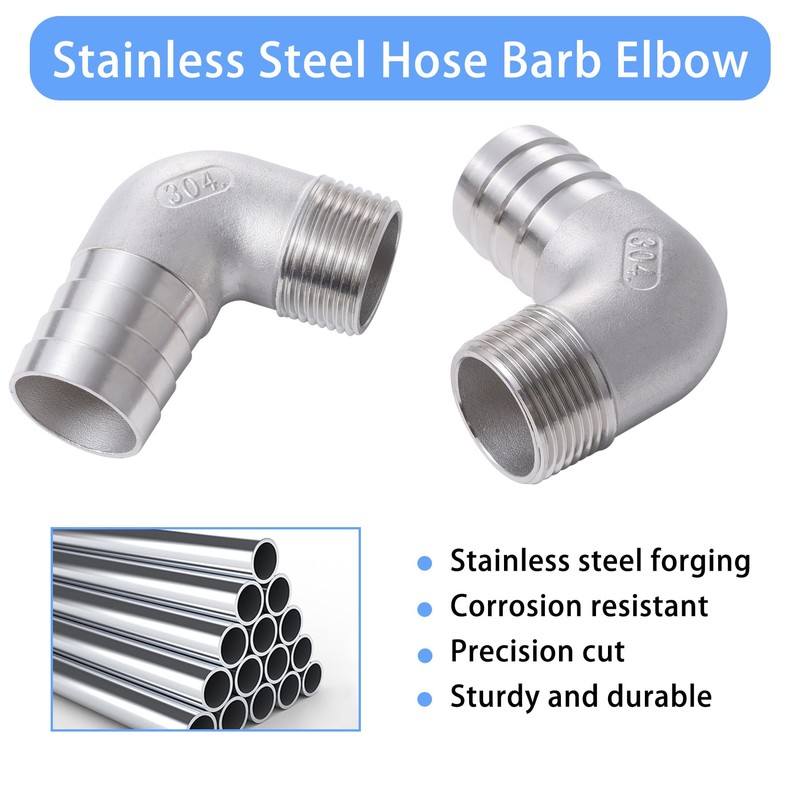 304 Stainless Steel 1" Hose Barb x 3/4" Male NPT 90 Degree Elbow for Air WaterFuel Home Brew Pipe Fitting Lead-Free 2 pcs
